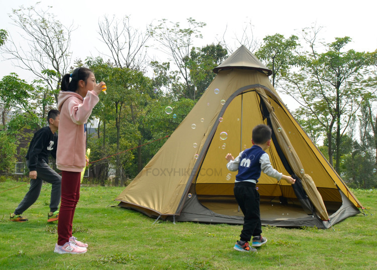 Vidalido Teepee Tent สีดำ เต็นท์แบบกระโจมอินเดียแดงขนาดใหญ่ 4-6 คนนอน เต็นท์ออกแบบมาให้ระบายอากาศได้ดี สูง โล่ง เต็นท์กระโจมเป็นเต็นท์ที่มีน้ำหนักเบาและติดตั้งง่าย โครงอลูมิเนียมอัลลอยด์ น้ำหนักเพียง 5.2 KG อุปกรณ์ครบเซ็ท สมอบก เชือก กระเป๋า