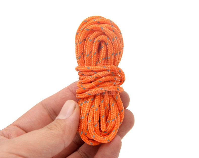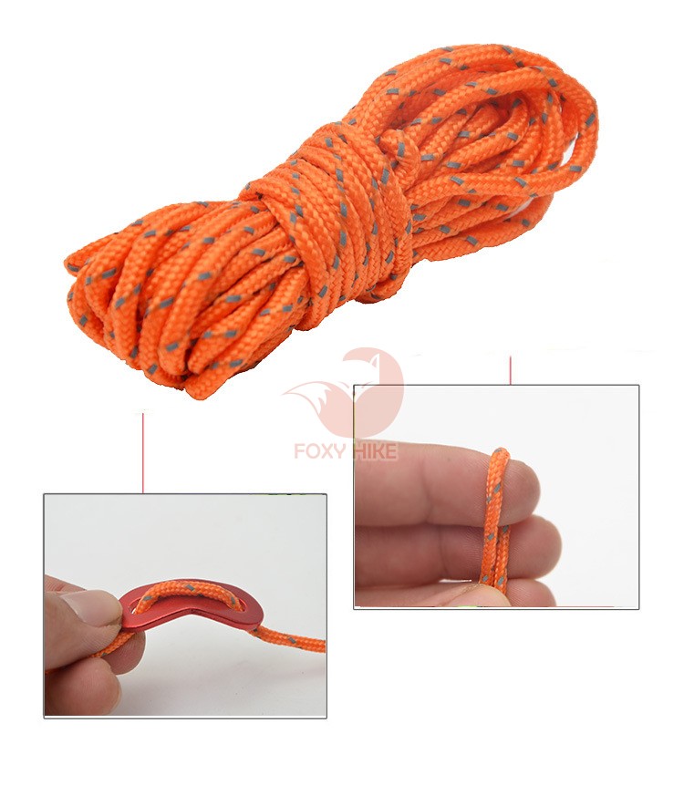 เชือกพร้อมตัวรั้งเชือก เชือกพร้อมเข็มขัดรัดเชือกเต็นท์ 1 ชุด มี เชือก 4 เส้น ตัวรั้งเชือก 4 อัน พร้อมถุงจัดเก็บ เชือกยาว 4 เมตร หนา 3 มม. ตัวรั้งเชือก เข็มขัดรัดเชือก แบบ 2 รู หนา 2 มม. ใช้เยึดเต็นท์ ทารป์ ฟลายชีท กับสมอบก และใช้ปรับสายรัดเต็นท์ ทารป์ ฟลายชีท ให้ตึงโดยไม่ต้องผูกเงื่อน ทำให้ กางทารป์ ฟลายชีท กับสมอบก ได้ไวขึ้นขึ้น สะดวก