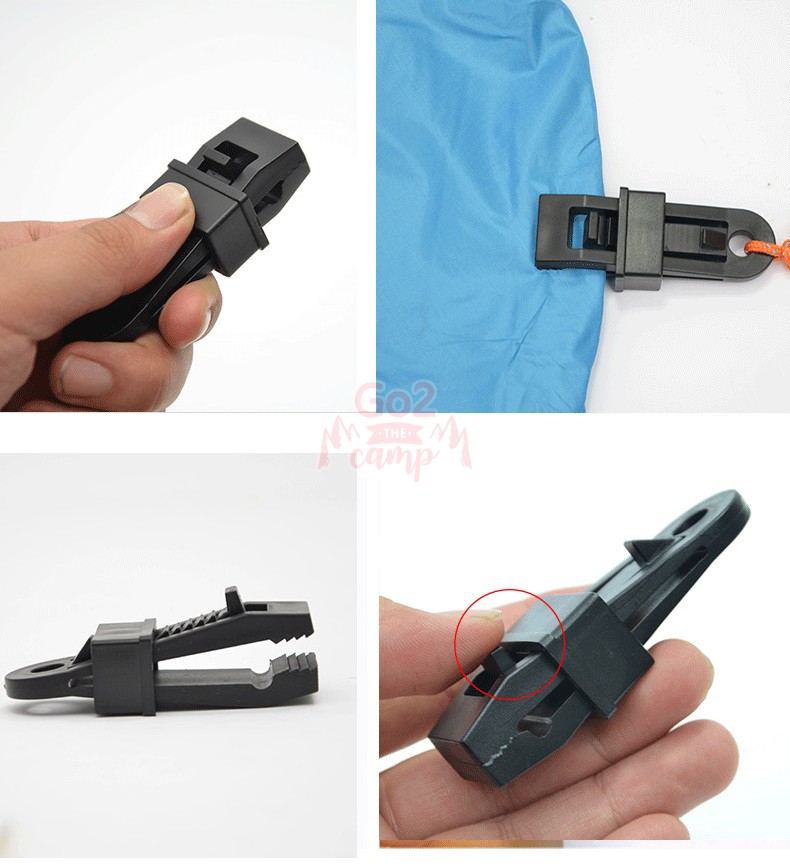 ตัวหนีบทาร์ป ฟลายชีท Tarp Flysheet Tent Power Clip สีดำ ใช้สำหรับต้องการยึด เชือกกับ ทาร์ป ฟลายชีท หรือเต็นท์ ใช้ง่าย สะดวก แข็งแรง เพียงหนีบ ตัวหนีบทาร์ป เข้ากับ ทาร์ป หรือ หลายชีท แล้วทำการร้อยเชือกที่รูด้านหลังตัวหนีบหรือจะใช้คาราบิเนอร์ร้อยเชือกกันก็ได้ แล้วนำเชือกไปยึดกับสมอบก หรือใช้ประยุกต์ไปผูกกับต้นไม้ เสาเหล็ก เสาปูน ก็ได้