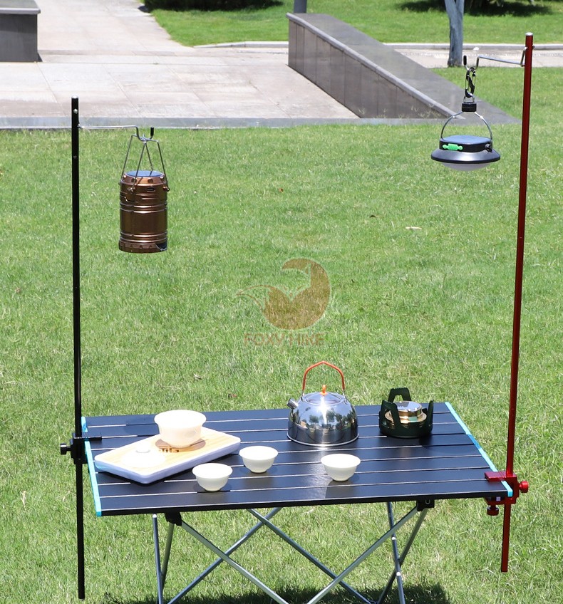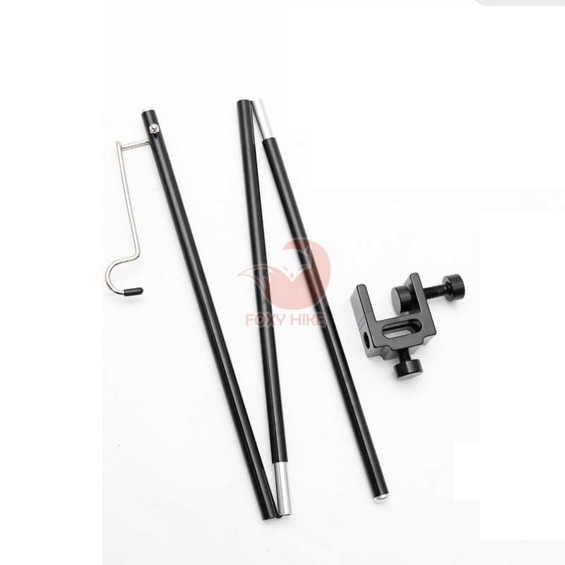 เสาแขวนโคมไฟอลูมิเนียม สีดำ ขาตั้งไฟ แคมป์ปิ้ง พร้อมที่แขวนโคมไฟ ปากหนีบและ ถุงจัดเก็บ เสาแขวนโคมไฟ ขาตั้งไฟอลูมิเนียมอัลลอยด์ ปรับความสูงได้สูงสุดที่ 91 ซม พร้อมที่หนีบกับโต๊ะ ปากหนีบกว้างสุด 3.3 ซม. น้ำหนักเบา พกพาสะดวก เหมาะแก่การนำไปใช้ในการตั้งแคมป์ หรือเดินป่า