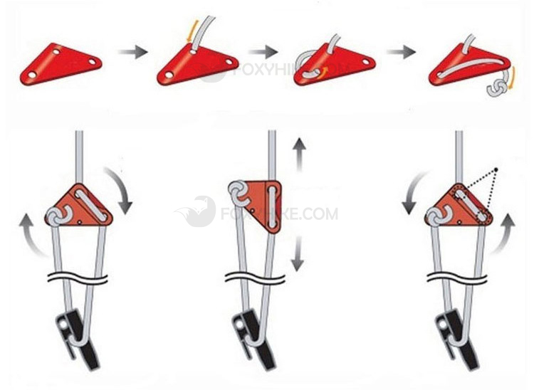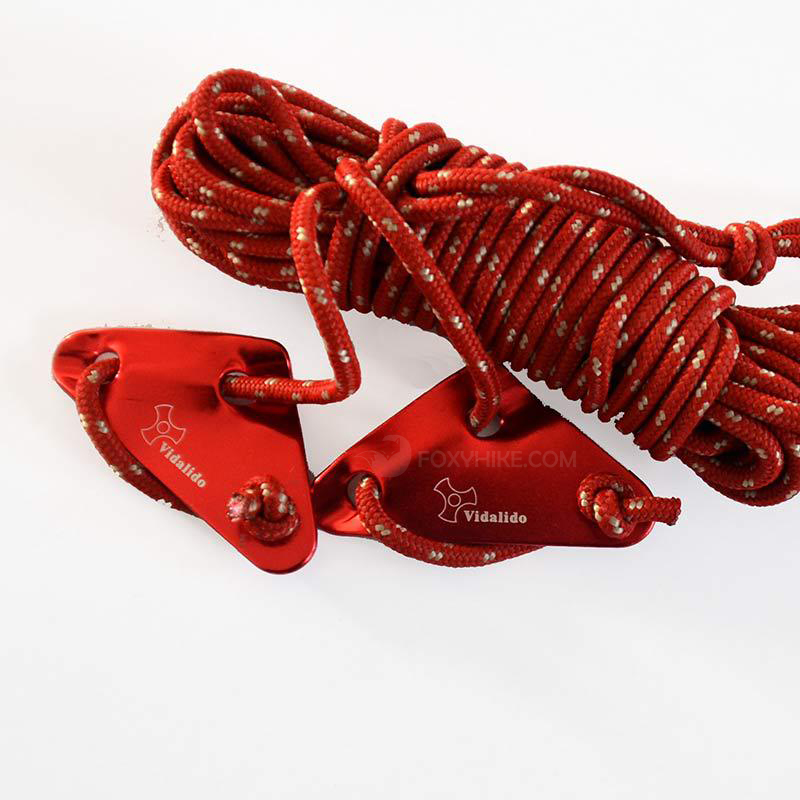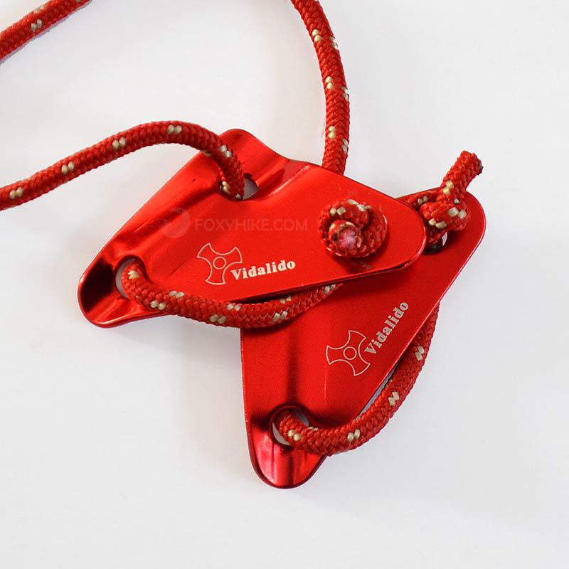 ตัวปรับเชือก Vidalido สีแดง แบบสามเหลี่ยม สามรู ใช้ปรับและล็อคหรือเร่งเชือกให้ตึง น้ำหนักเบา เพียง 12 กรัม แต่แข็งแรง ปรับและใช้งานง่าย