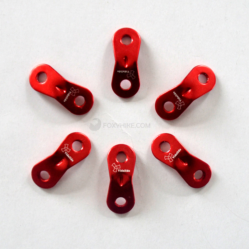 ตัวปรับเชือก Vidalido แบบสองรู สีแดง ใช้ปรับและล็อคหรือเร่งเชือกให้ตึง น้ำหนักเบา เพียง 12 กรัม แต่แข็งแรง ปรับและใช้งานง่าย
