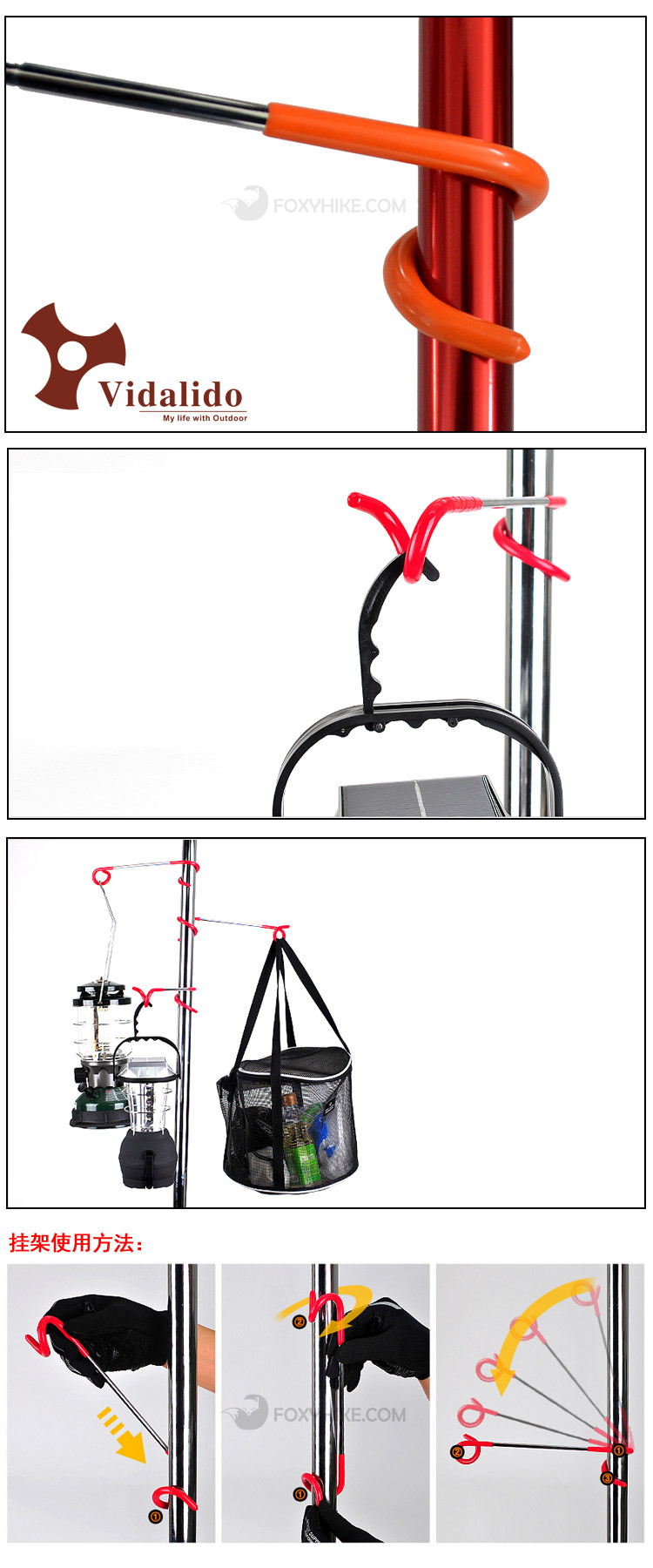 ที่แขวน Vidalido ที่แขวนโคมไฟ ที่แขวนอเนกประสงค์สำหรับงานแคมป์ปิ้ง ใช้สำหรับแขวนโคมไฟ ถุง ตะกร้า หรืออื่น ๆ